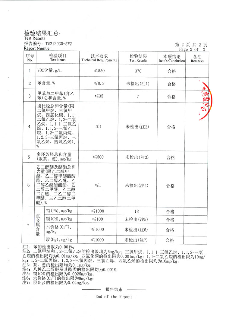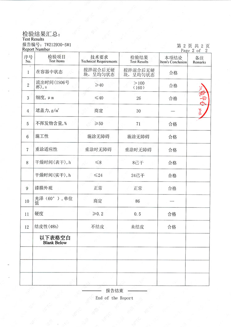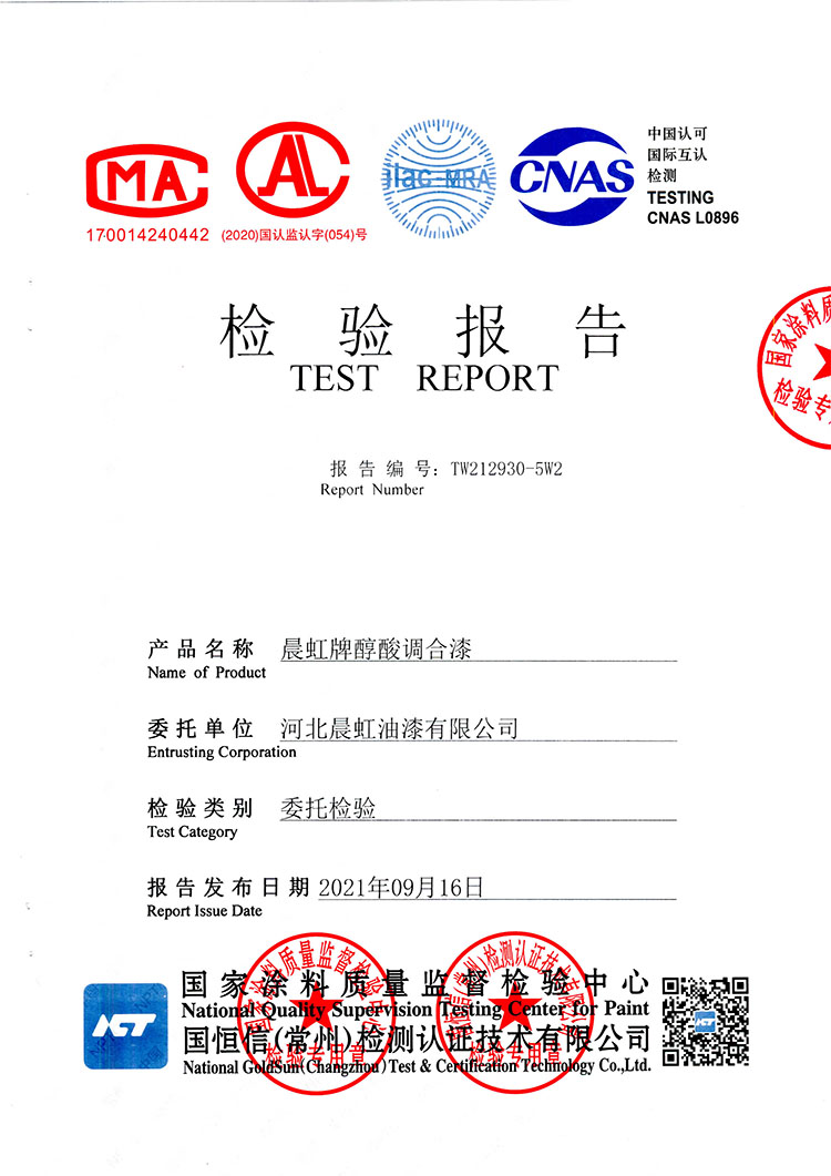 晨虹牌醇酸調(diào)合漆檢驗報告