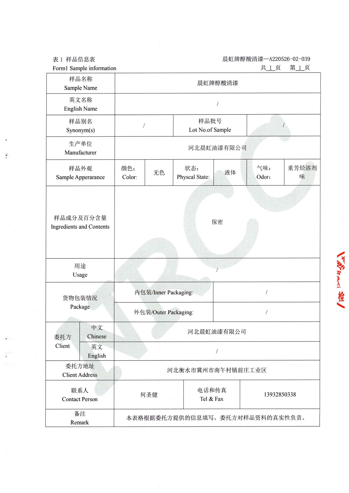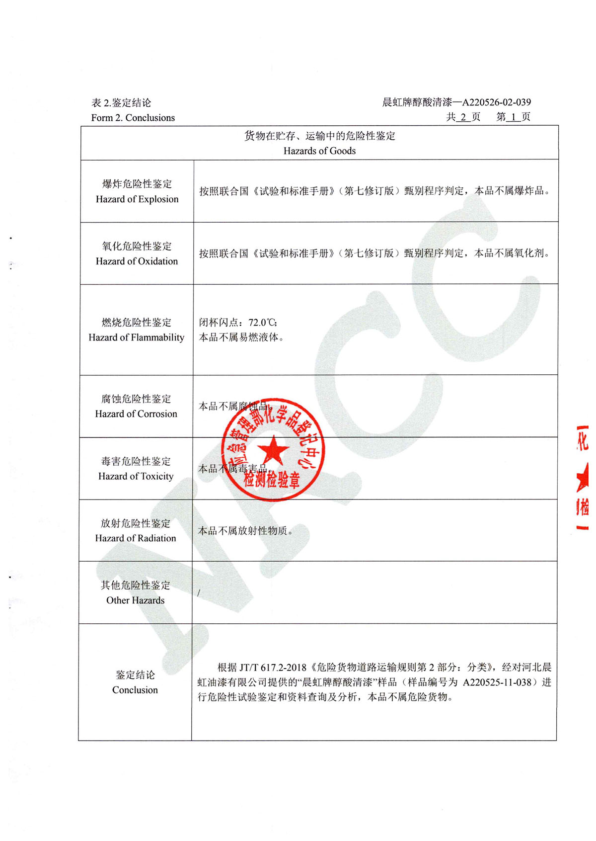 晨虹醇酸清漆道路貨物運輸鑒定書